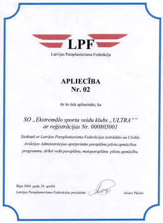 С 28 по 29 августа в Даугавпилсе, клуб ULTRA при поддержке Латвийского Аэроклуба, провел Первый Открытый Чемпионат Латвии по мотопарапланам. В соренованиях приняли участие несколько пилотов из Литвы. Особенно запомнился второй день соревнований, когда пилотам, выполнившим задание, удавалось подняться под облака с выключенными моторами!