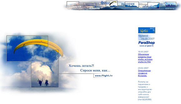 Появление странички нашего клуба в сети интернет. Стоить отметить, что “flight.lv” была первой парапланерной вэб-страницей в Латвии.