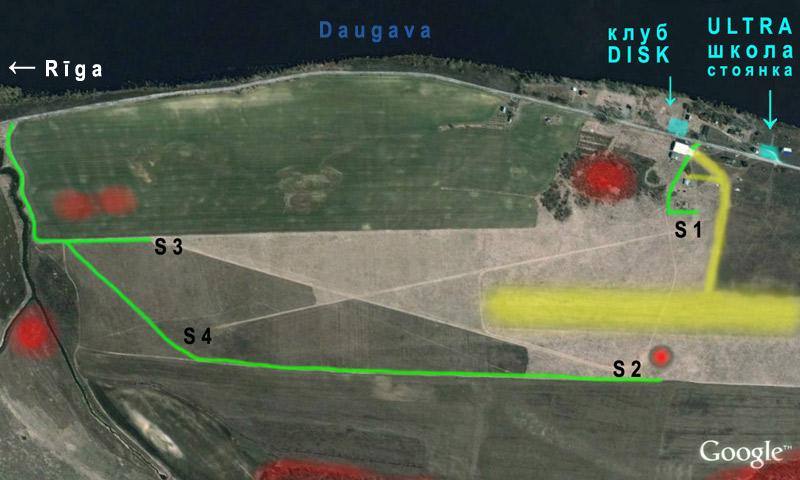 S1, S2, S3, S4 – стартовые площадки для полетов на лебедке. Для информации о месте старта звонить руководителю полетов (25545201 Сергей,